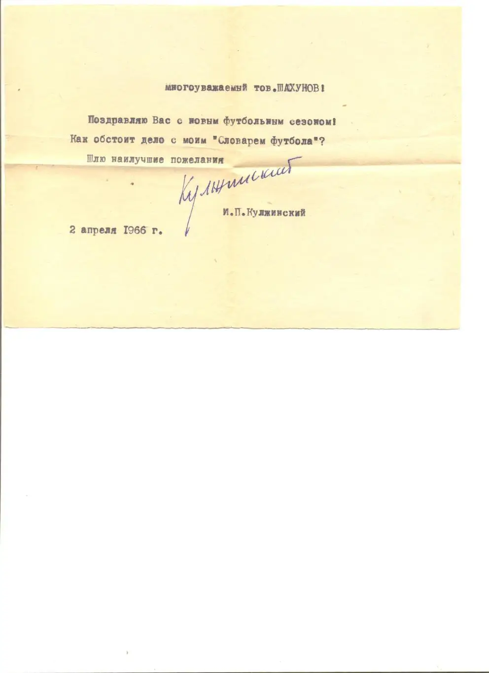 Автограф Кулжинский И.П. (Письмо из личной переписки).