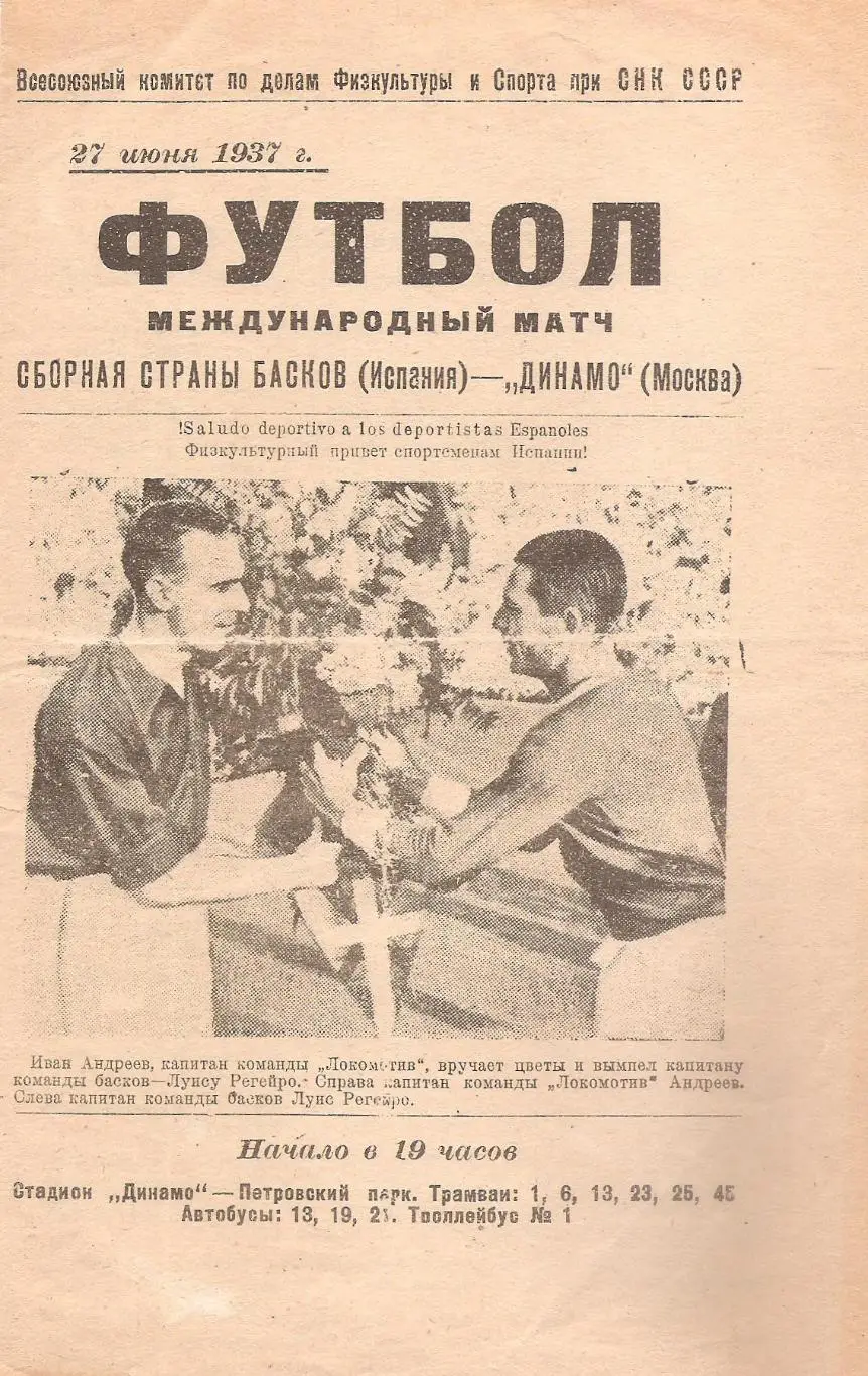 Сборная страны БАСКОВ - Динамо(Москва) 27.06.1937г. Межд. матч. (КОПИЯ!)Сборная страны БАСКОВ - Динамо(Москва) 27.06.1937г. Межд. матч. (КОПИЯ!) 1