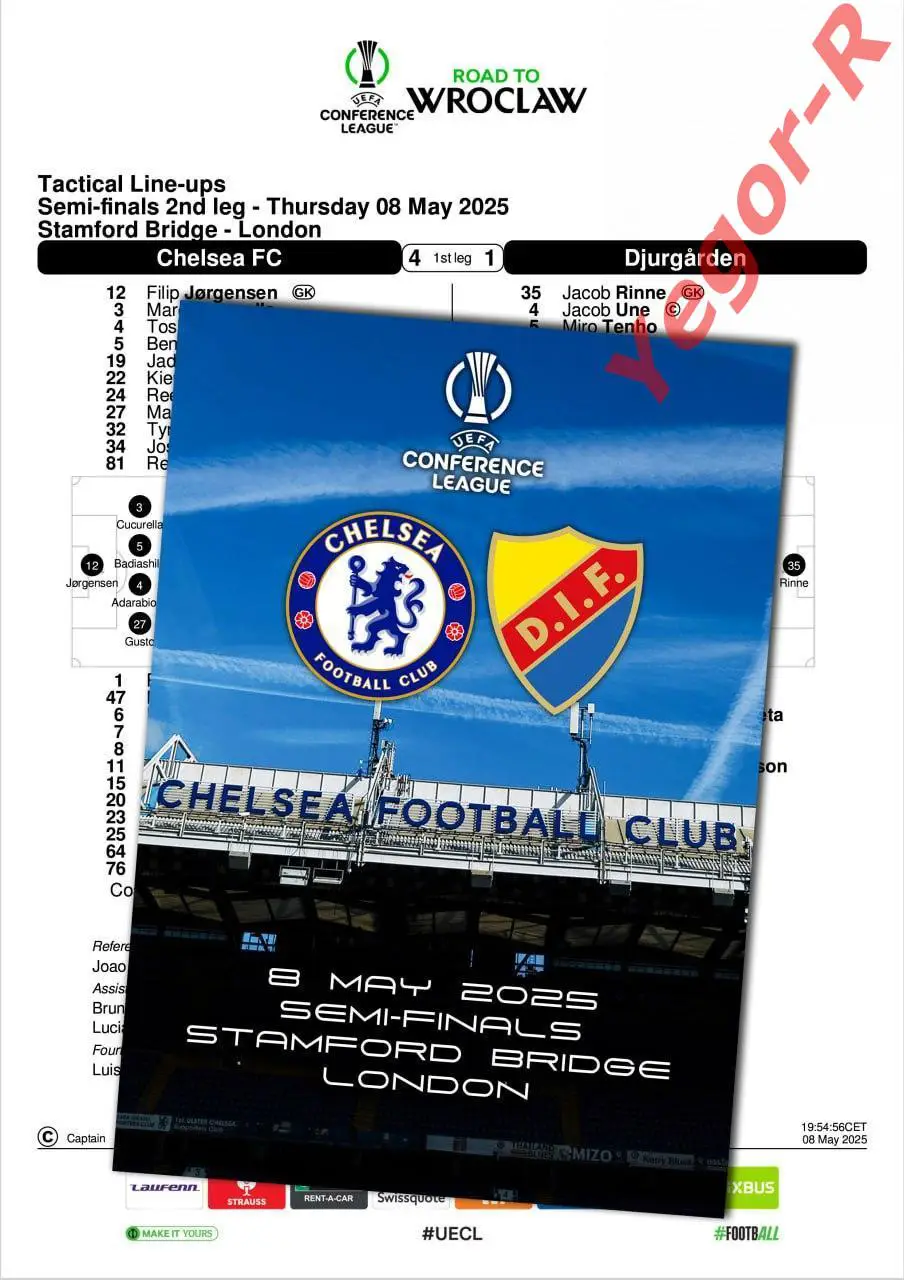 ЧЕЛСИ Лондон Англия - ЮРГОРДЕН Швеция 8 мая 2025 ЛК ФАН 12 стр + офиц ТШ