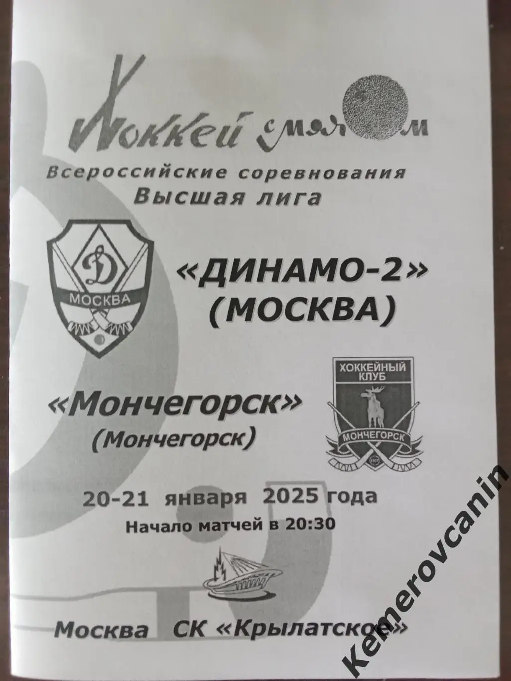 Динамо-2 Москва - Мончегорск Мончегорск 20-21.01.2025 высшая лига 2024/2025