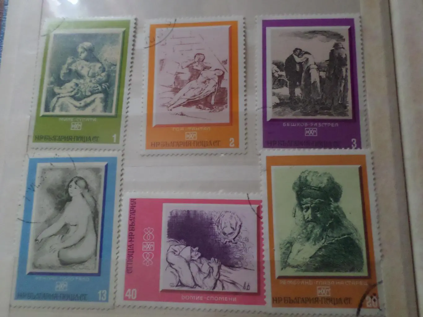 Марки спорт в альбоме. Футбол Болгария 1964 хоккей 1972 Саппоро Бег СССР лыжи и