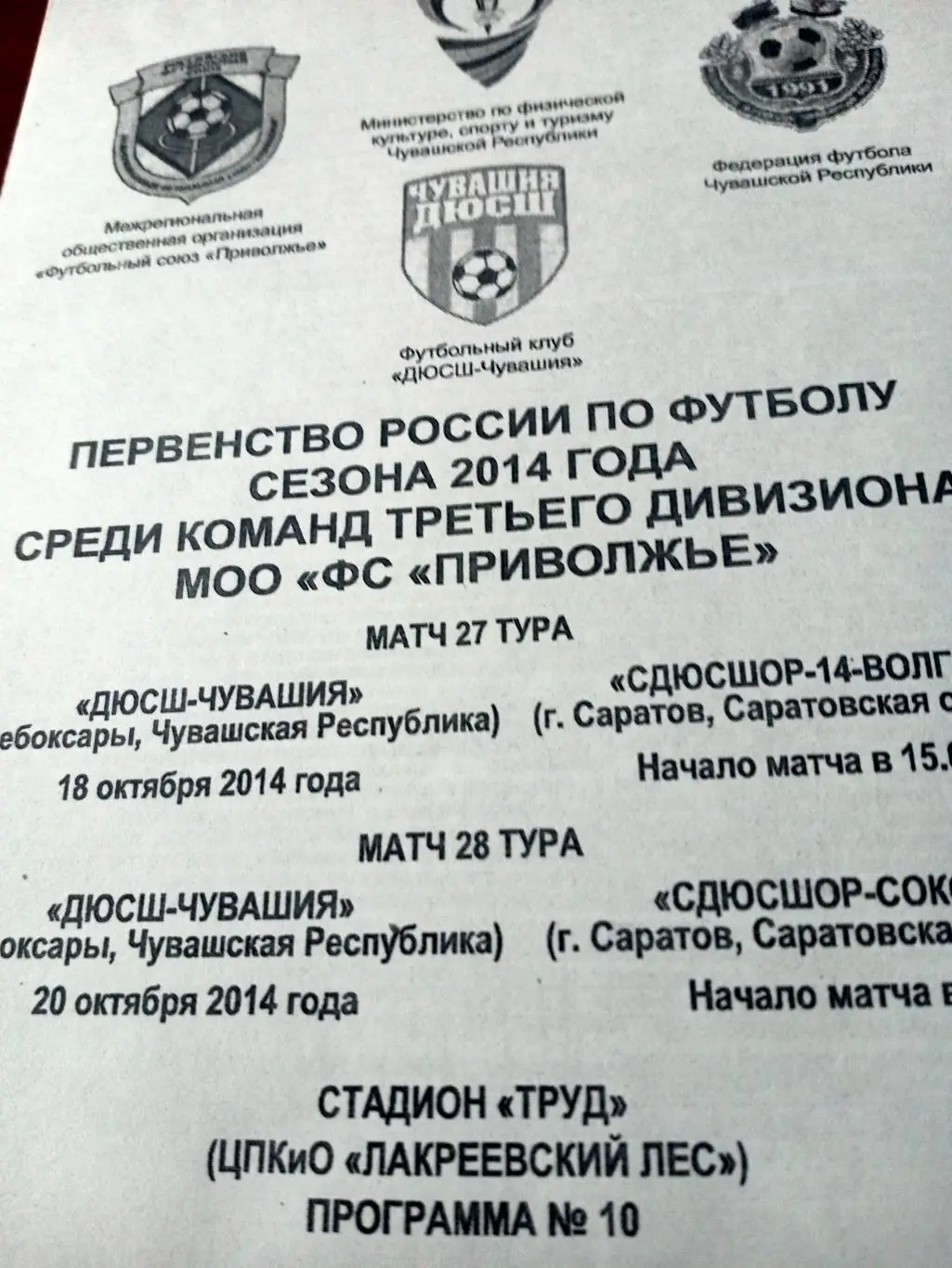 ДЮСШ-Чувашия, 2014 г. Матчи - команды Саратовской области