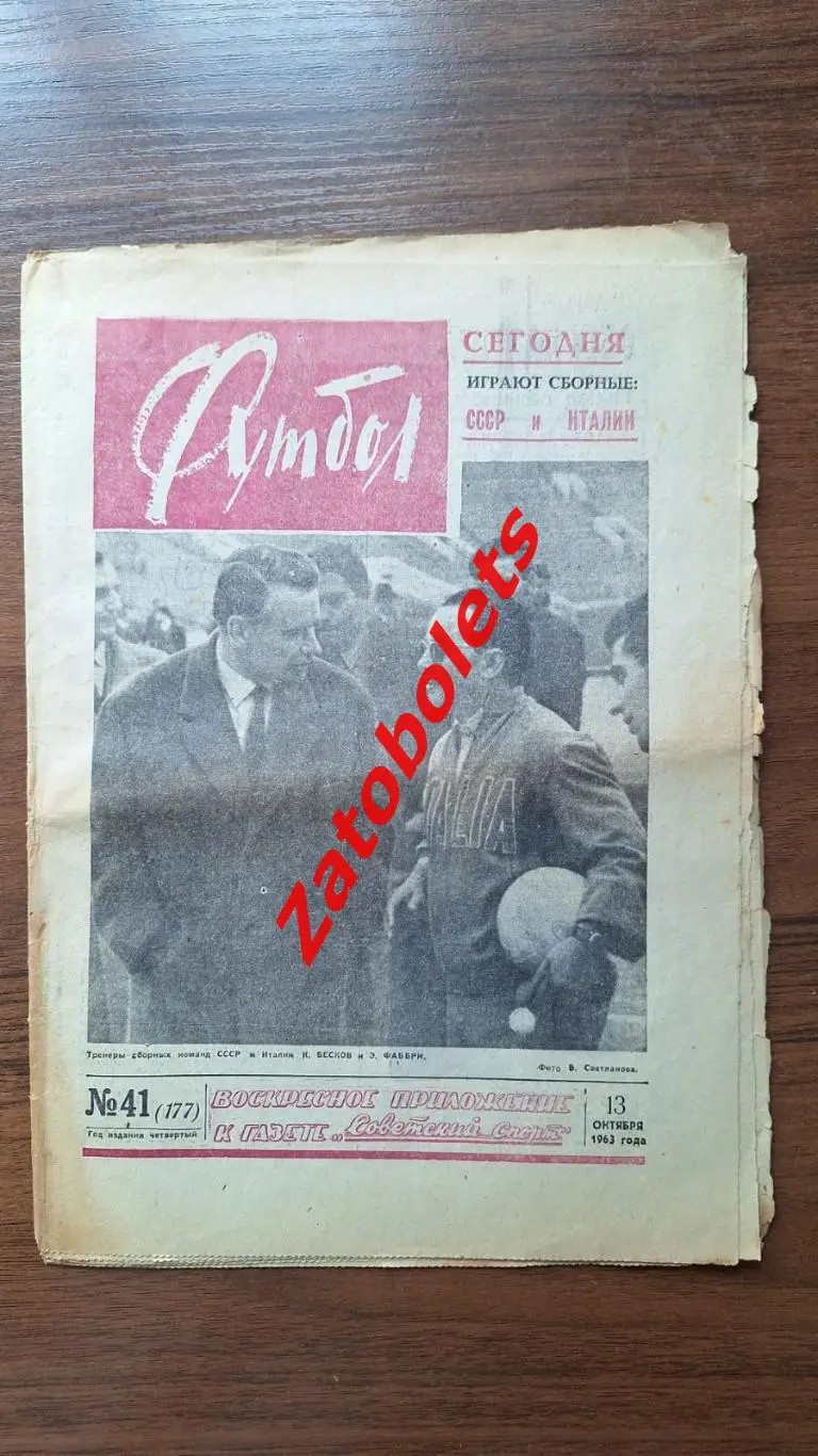 Еженедельник Футбол 1963 - 41 СССР Италия превью