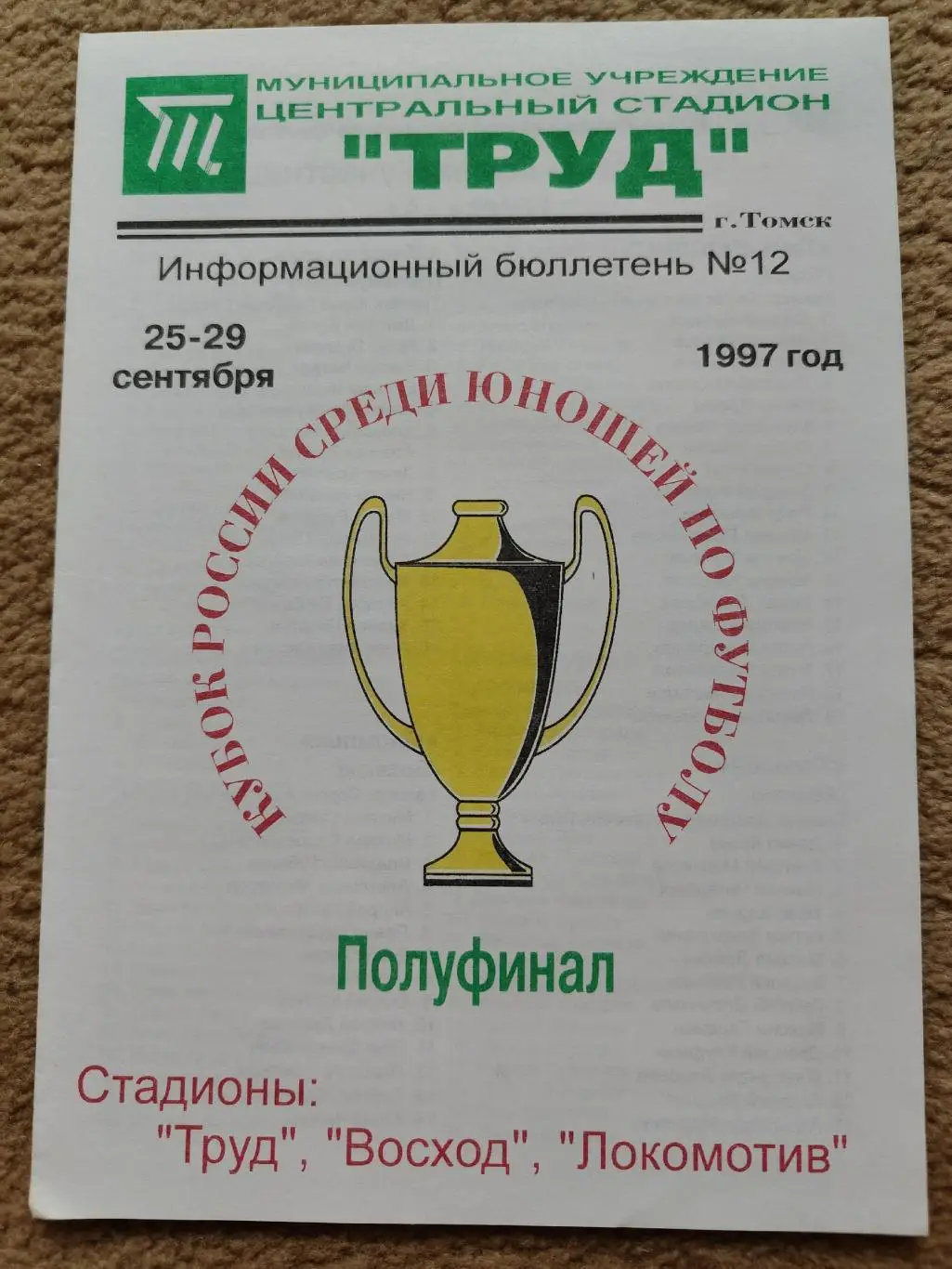 Томск 1997 Кубок России юноши (Кемерово Чита Барнаул Красноярск Братск Абакан)Томск 1997 Кубок России юноши (Кемерово Чита Барнаул Красноярск Братск Абакан) 1