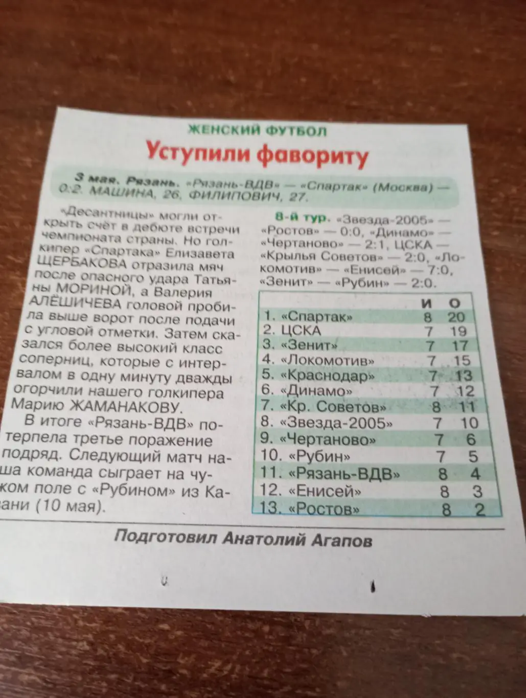 ЖФК. Рязань ВДВ - Спартак (Москва).3.05.2025.Счёт (0-2)