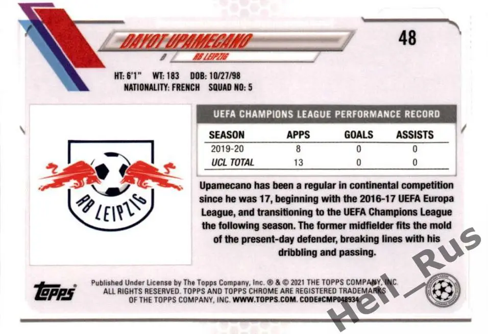 Футбол Карточка Дайо Упамекано РБ Лейпциг, Бавария Мюнхен Лига Чемпионов 2020-21