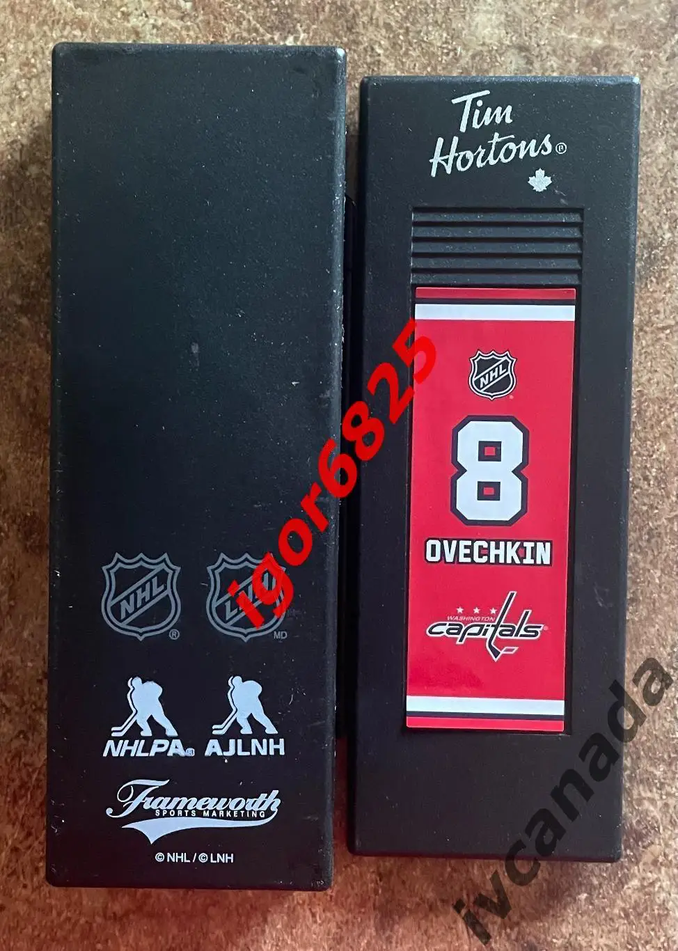 Сувенирный набор из серии Мини Клюшки Звезд НХЛ, в фирменной картонной упаковке: Хоккей АЛЕКСАНДР ОВЕЧКИН ALEX OVECHKIN №8 Вашингтон Кэпиталз, набор с клюшкой, изготовлен по заказу Tim Hortons 2020-2021.