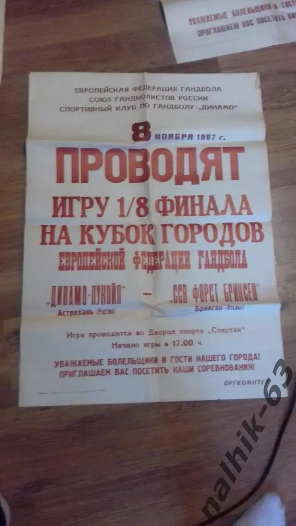 Динамо Астрахань - Форст Бриксен Италия 8 ноября 1997 года кубок городов