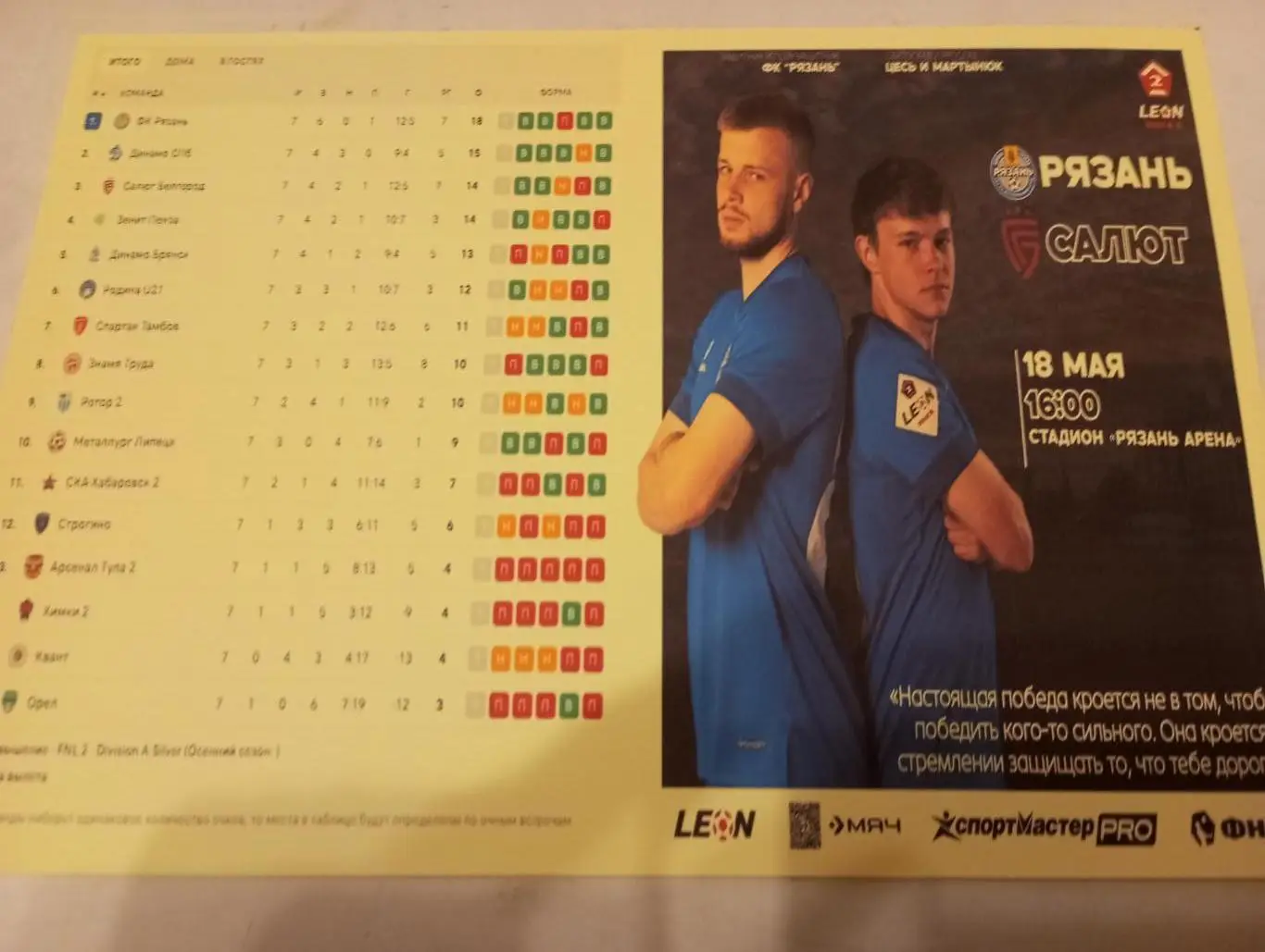 ФК. Рязань - Салют(Белгород ). 18.05.2025. Авторская (1-вид).