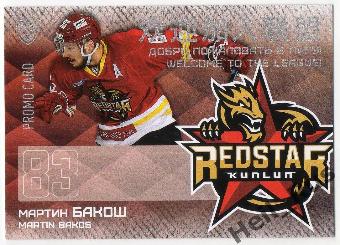Хоккей. Карточка для автографа Мартин Бакош Куньлунь Ред Стар Пекин КХЛ 2016/17