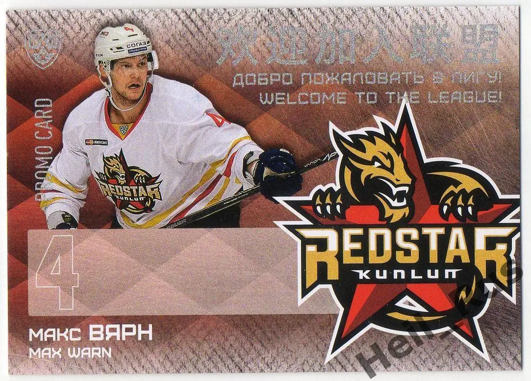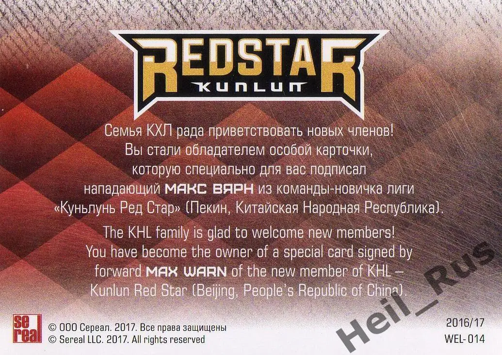 Хоккей. Карточка для автографа Макс Вярн Куньлунь Ред Стар Пекин КХЛ/KHL 2016/17