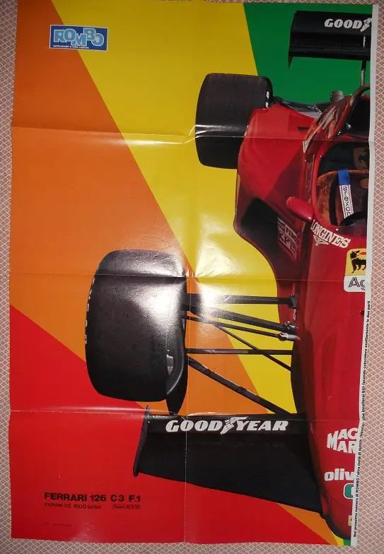 Постер формату 16 сторінок, тобто приблизно 110х85 см, з італійського журналу Rombo. Автомобіль Феррарі, володар Кубку конструкторів Ф-1 1983. Стан відмінний / excellent condition