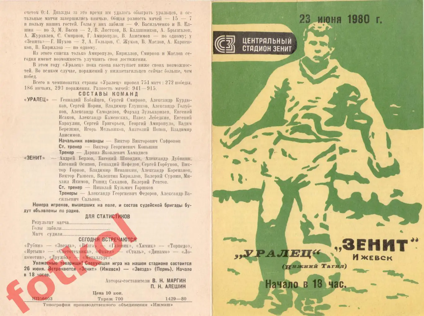 ЗЕНИТ Ижевск - УРАЛЕЦ Нижний Тагил 23.06.1980