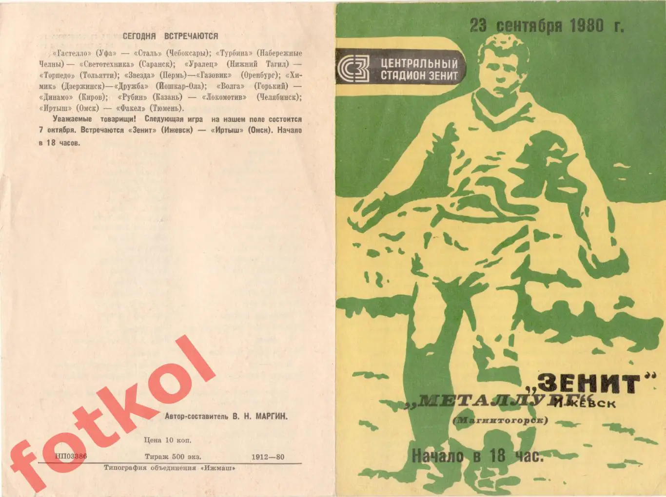 ЗЕНИТ Ижевск - МЕТАЛЛУРГ Магнитогорск 23.09.1980