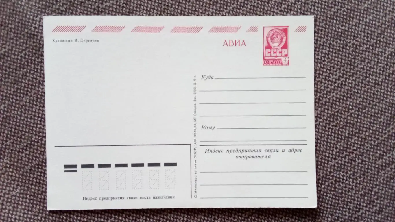 Отправка осуществляется согласно существующим тарифам " Почты России ". Отправка осуществляется всех купленных товаров ОДНИМ ПОЧТОВЫМ ОТПРАВЛЕНИЕМ !!! Отправка осуществляется заказным письмом , в соответствующей упаковке. Издательство : " Министерство связи СССР " , 1981 г. , художник : И. Дергилев