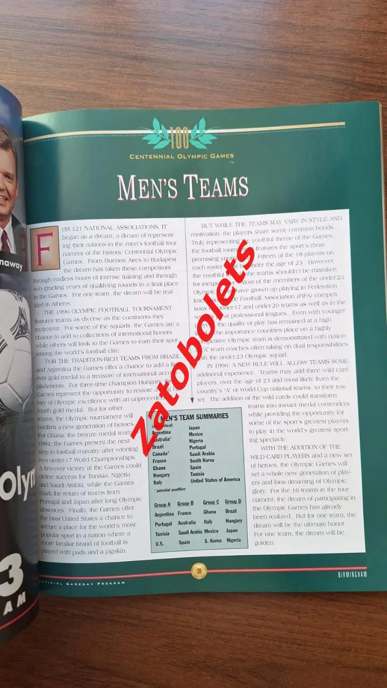 Официальная программа к матчам Олимпийского турнира по футболу в Бирмингеме Но есть расписание всего турнира и представление всех команд и мужского и женского турниров