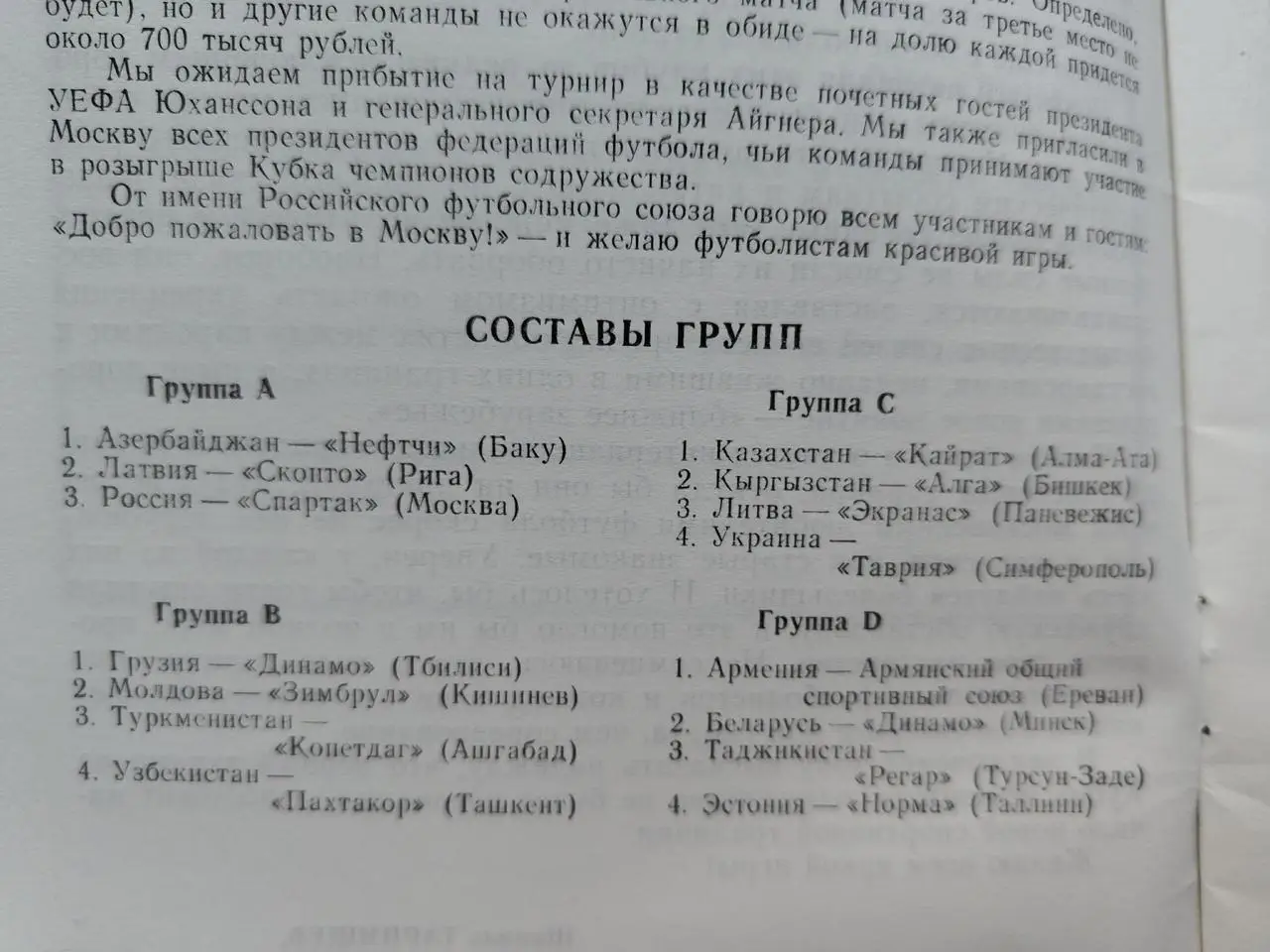 Кубок Содружества 1993 Спартак Москва Динамо Тбилиси Минск Нефтчи Таврия Кайрат