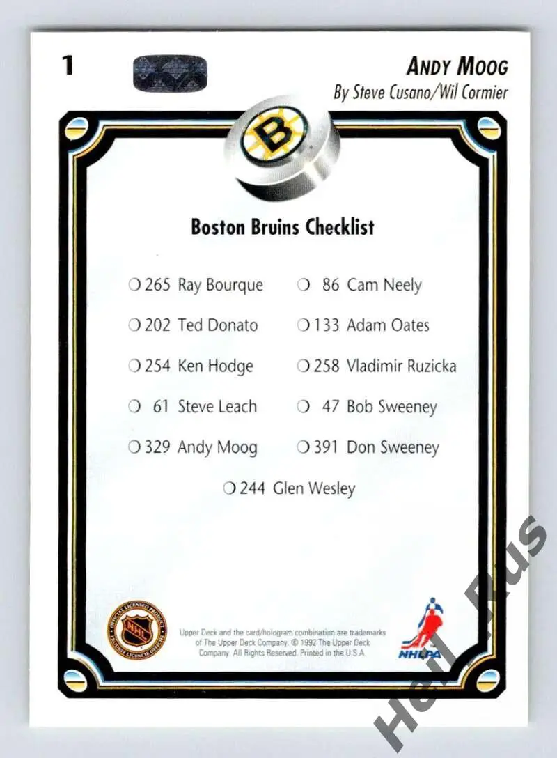 Хоккей Карточка Andy Moog/Энди Муг (Boston Bruins/Бостон Брюинз) НХЛ/NHL 1992/93