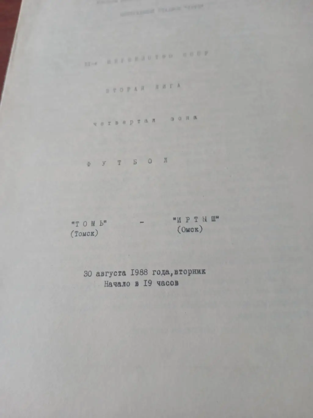 Томь Томск - Иртыш Омск. 30 августа 1988 год