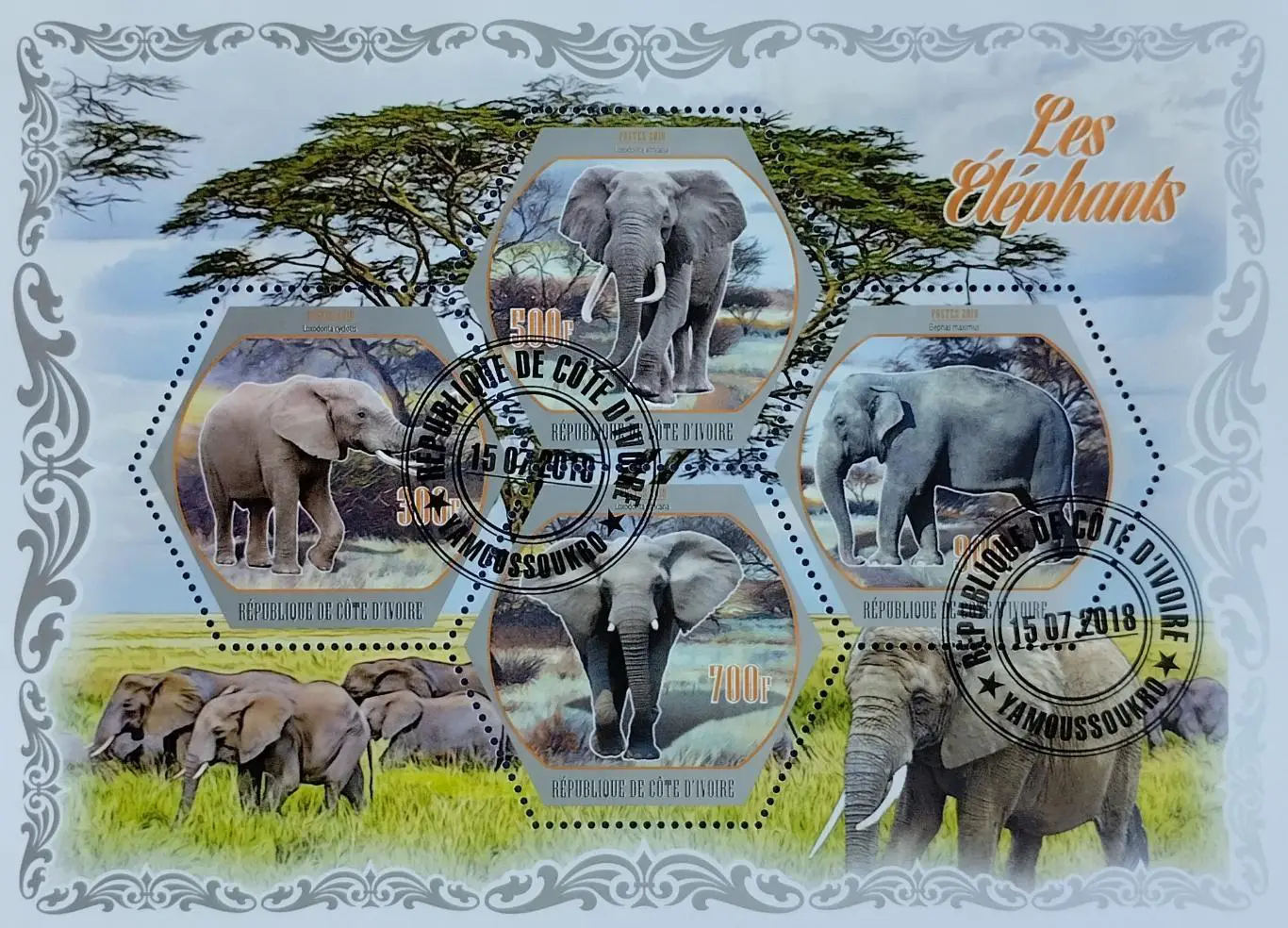 Малый лист. Кот-д’Ивуар 2018. Фауна. Слоны