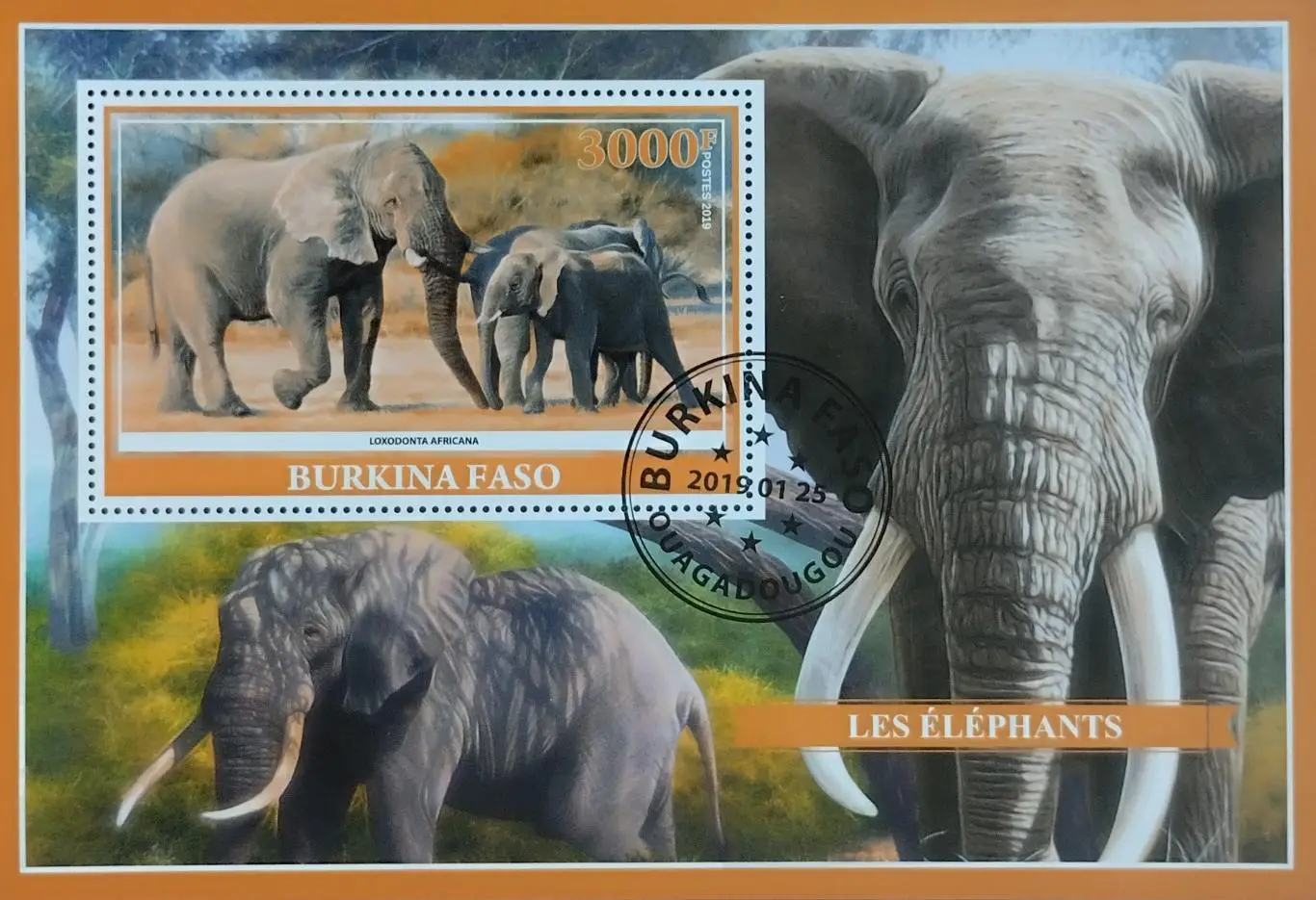 Блок. Буркино Фасо 2019. Фауна. Слоны.