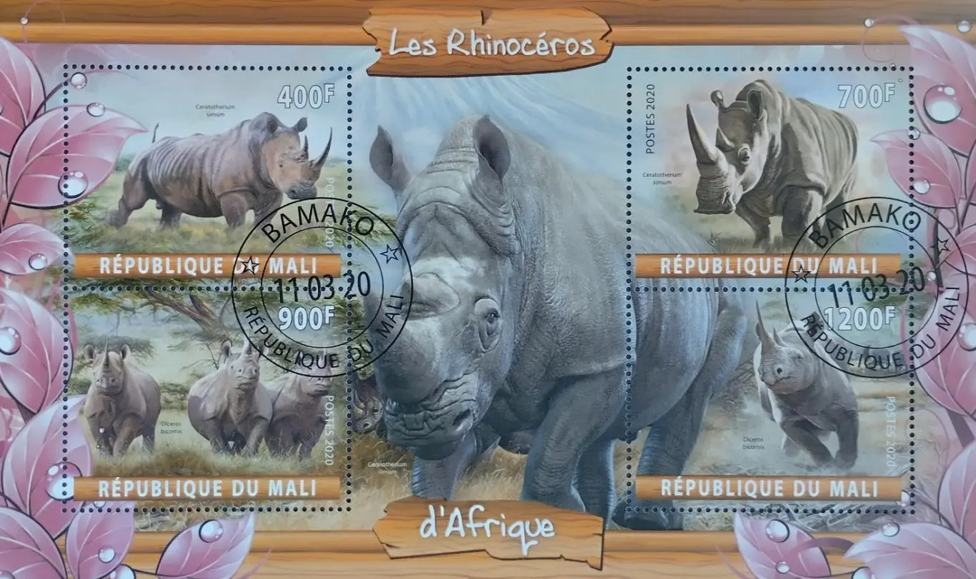 Малый лист. Мали 2020. Фауна. Носороги.