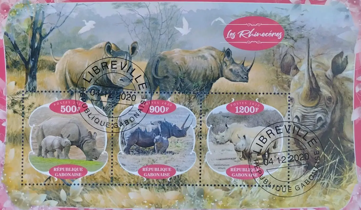 Малый лист. Габон 2020. Фауна. Носороги.