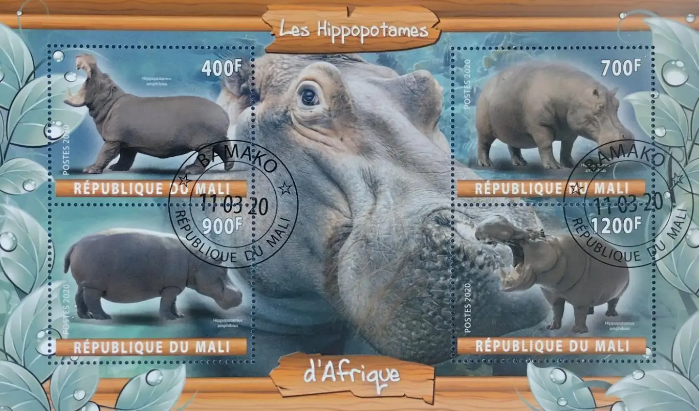 Малый лист. Мали 2020. Фауна. Бегемоты.