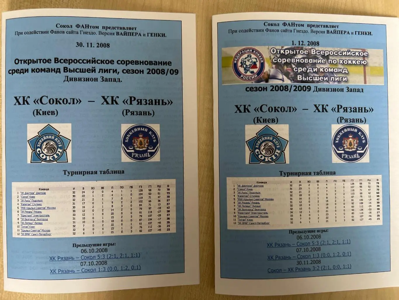 Хоккей. Сокол Киев - ХК Рязань 2008-2009 2шт цвет