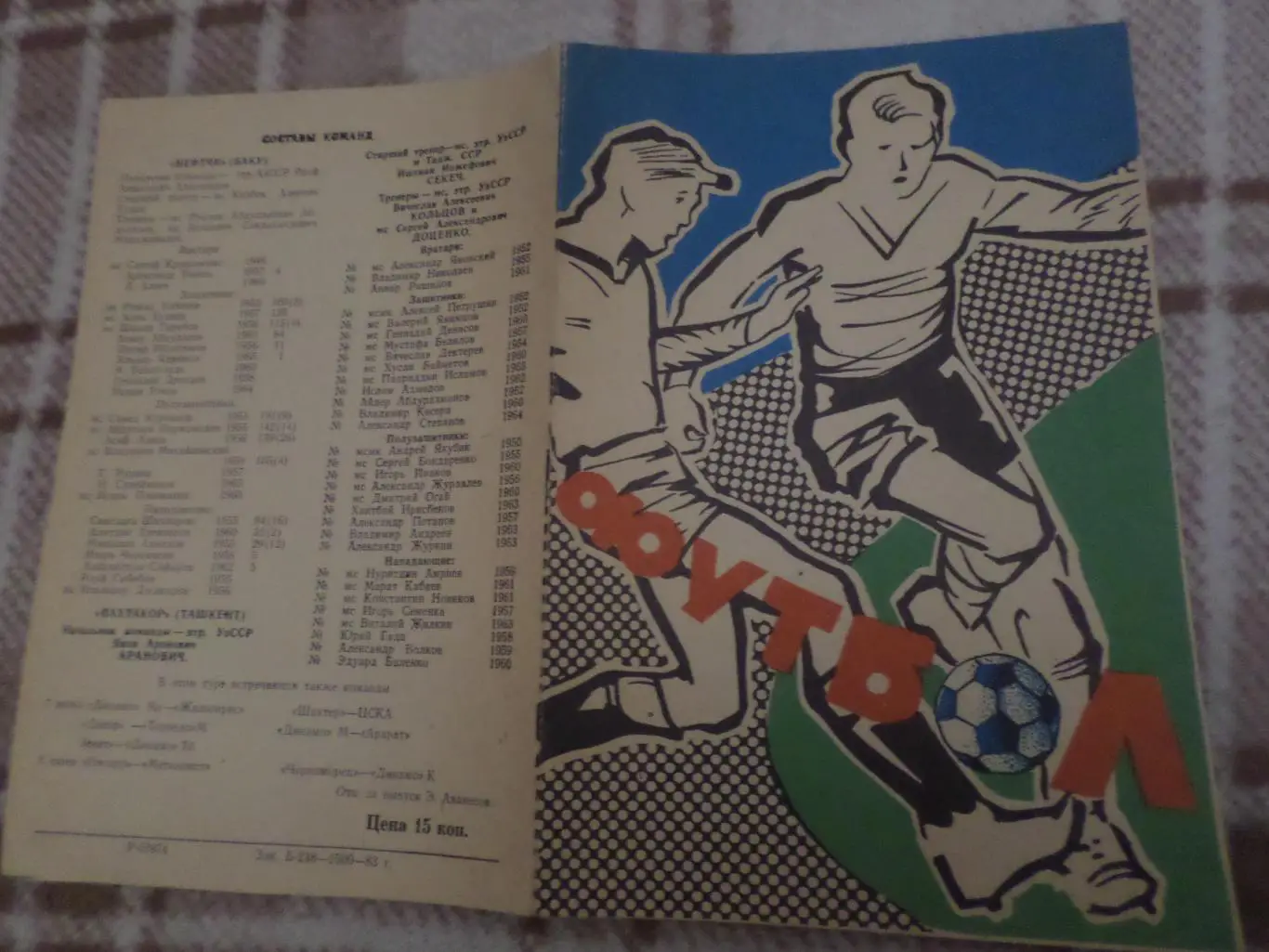 программа Пахтакор Ташкент - Нефтчи Баку 1983 г