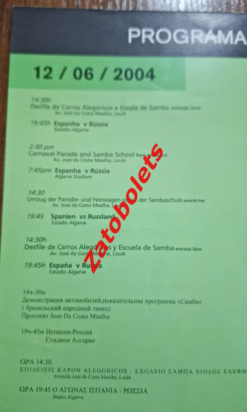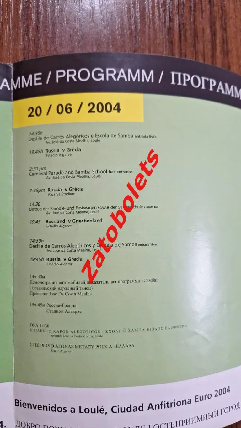 Программа-буклет на 3 матча Чемпионата Европы-2004 в Фару / Лоле