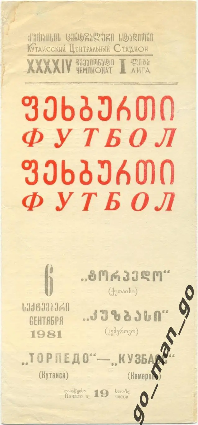 ТОРПЕДО Кутаиси – КУЗБАСС Кемерово 06.09.1981.