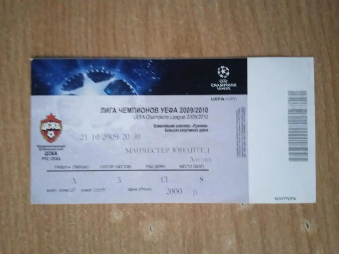 Билет Спарта Прага Чехия - ЦСКА Москва Россия 2015-2016 №2