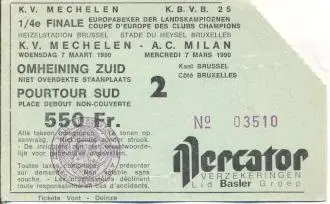 білет KV Mechelen Belgium/Бельгія-Мілан/AC Milan Italy/Італія 1990b match ticket
