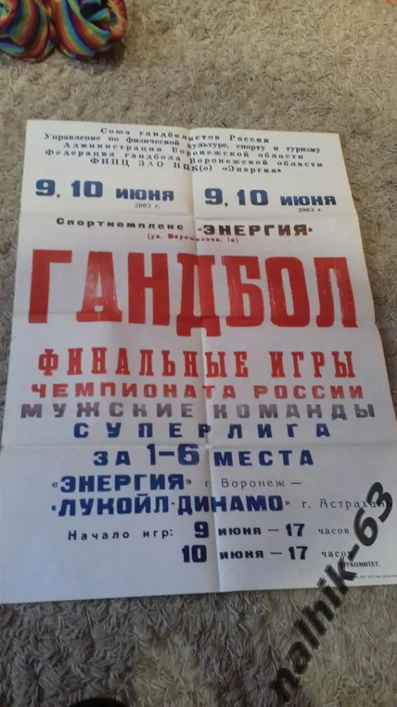 Энергия Воронеж-Динамо Астрахань 9-10 июня 2003 год финал за 1-6 место афиша