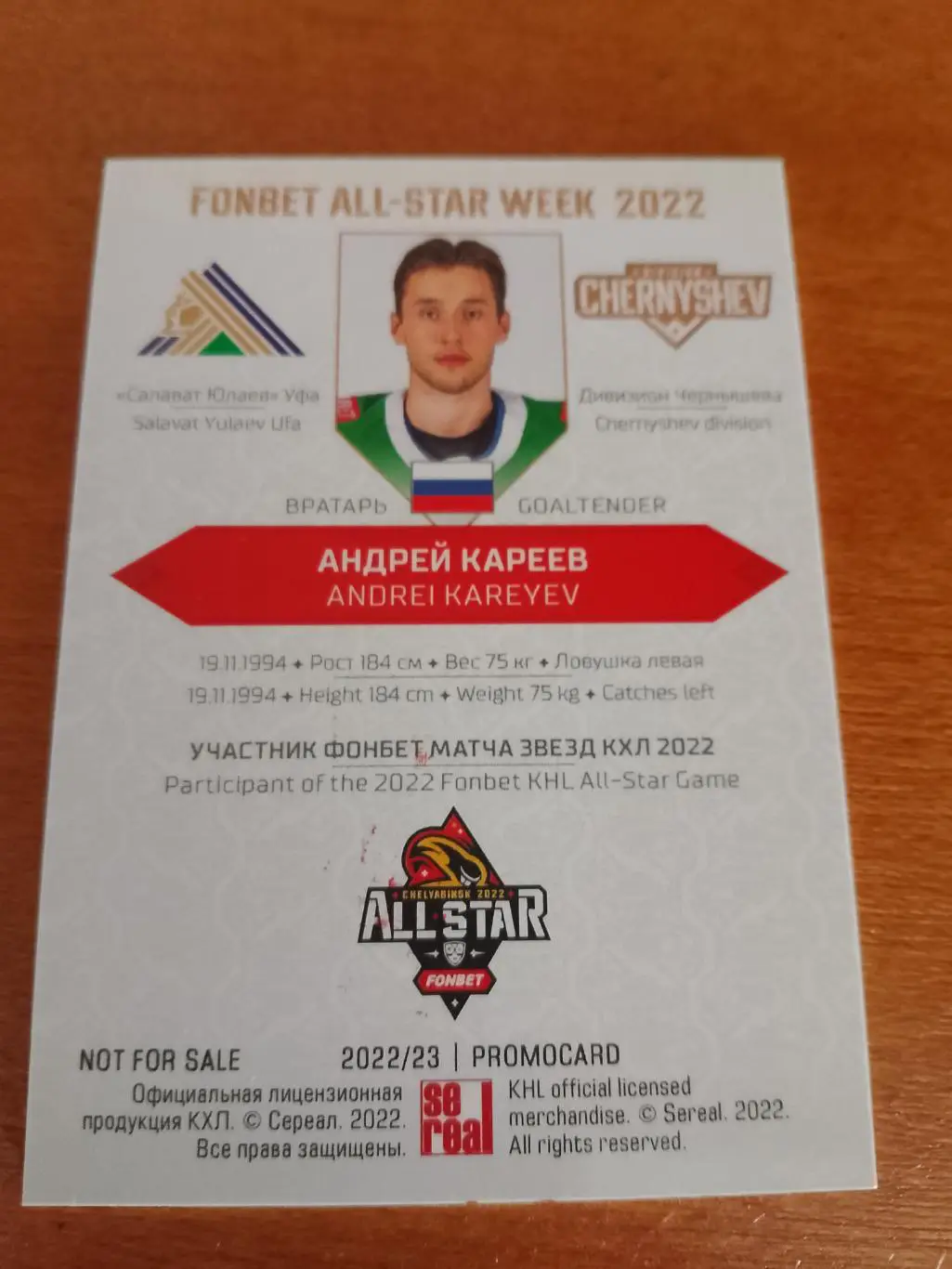 Промо карта с автографом Андрей Кареев Салават ЮлаевМатч Звёзд КХЛ 2022