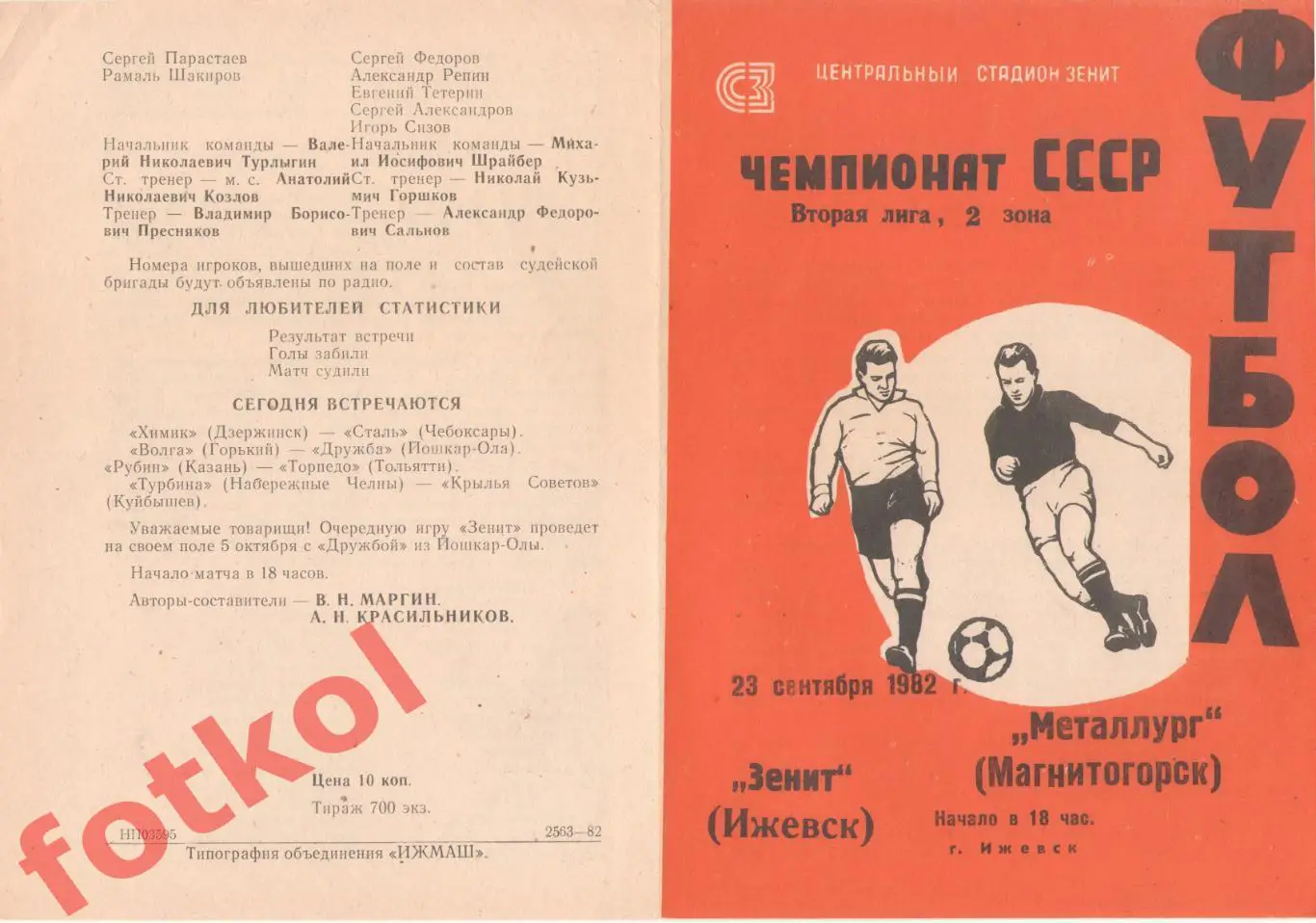 ЗЕНИТ Ижевск - МЕТАЛЛУРГ Магнитогорск 23.09.1982