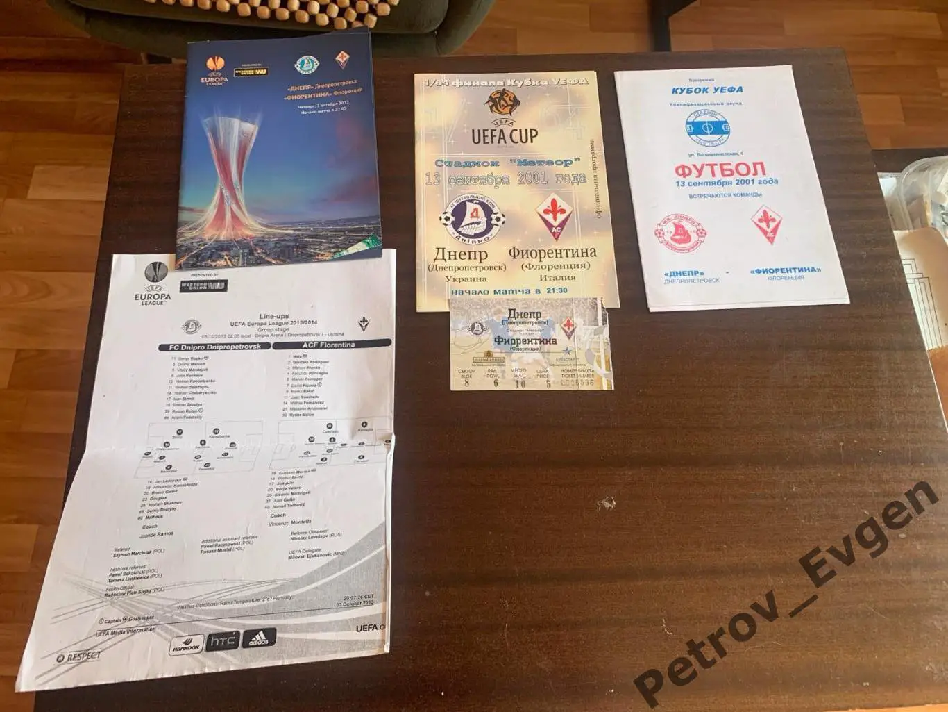 Набор Днепр-Фиорентина 3 програмки,билет,протокол.