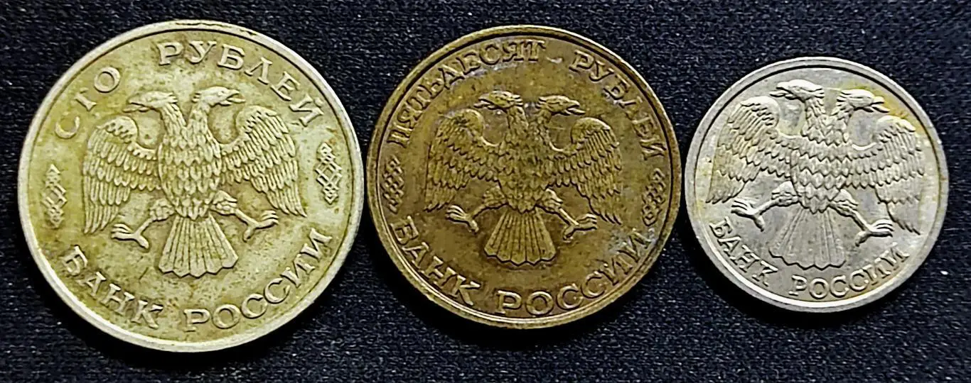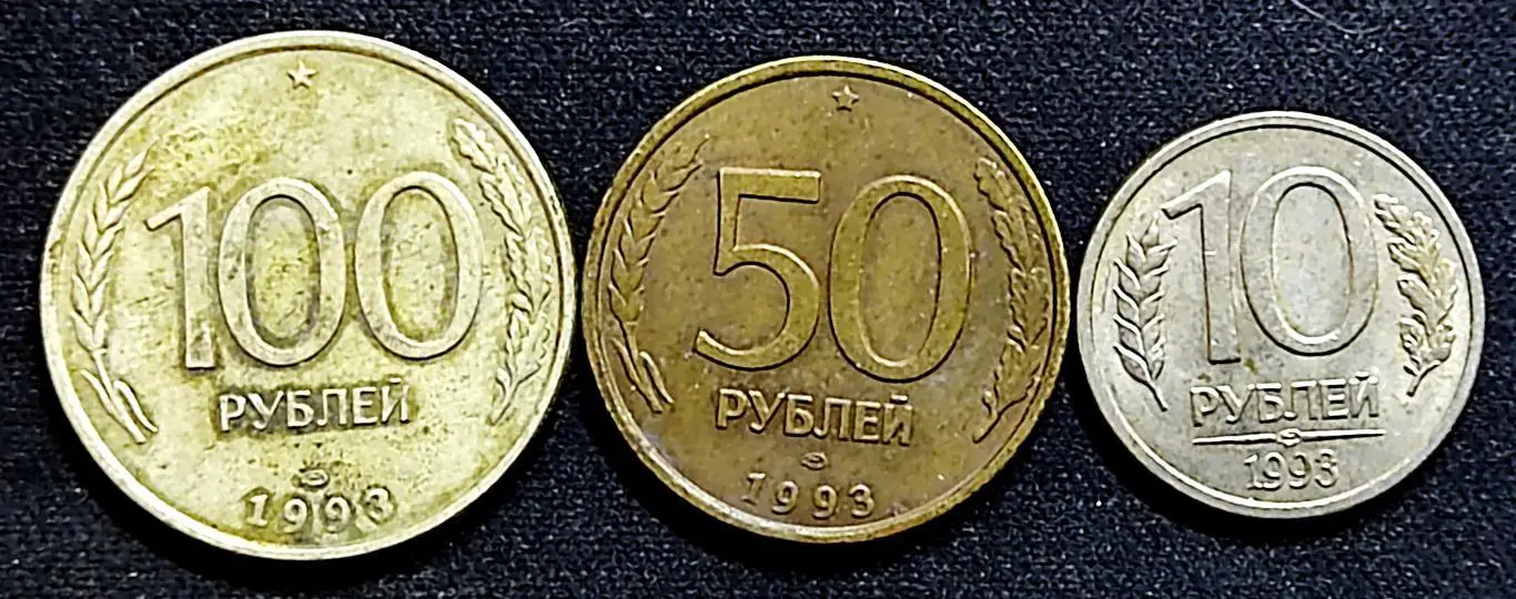 100 рублей 50 рублей 10 рублей 1993 год ЛМД .