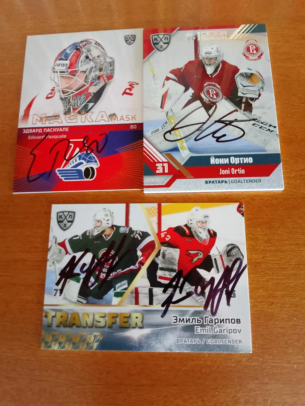 3 автографа вратарей Кхл