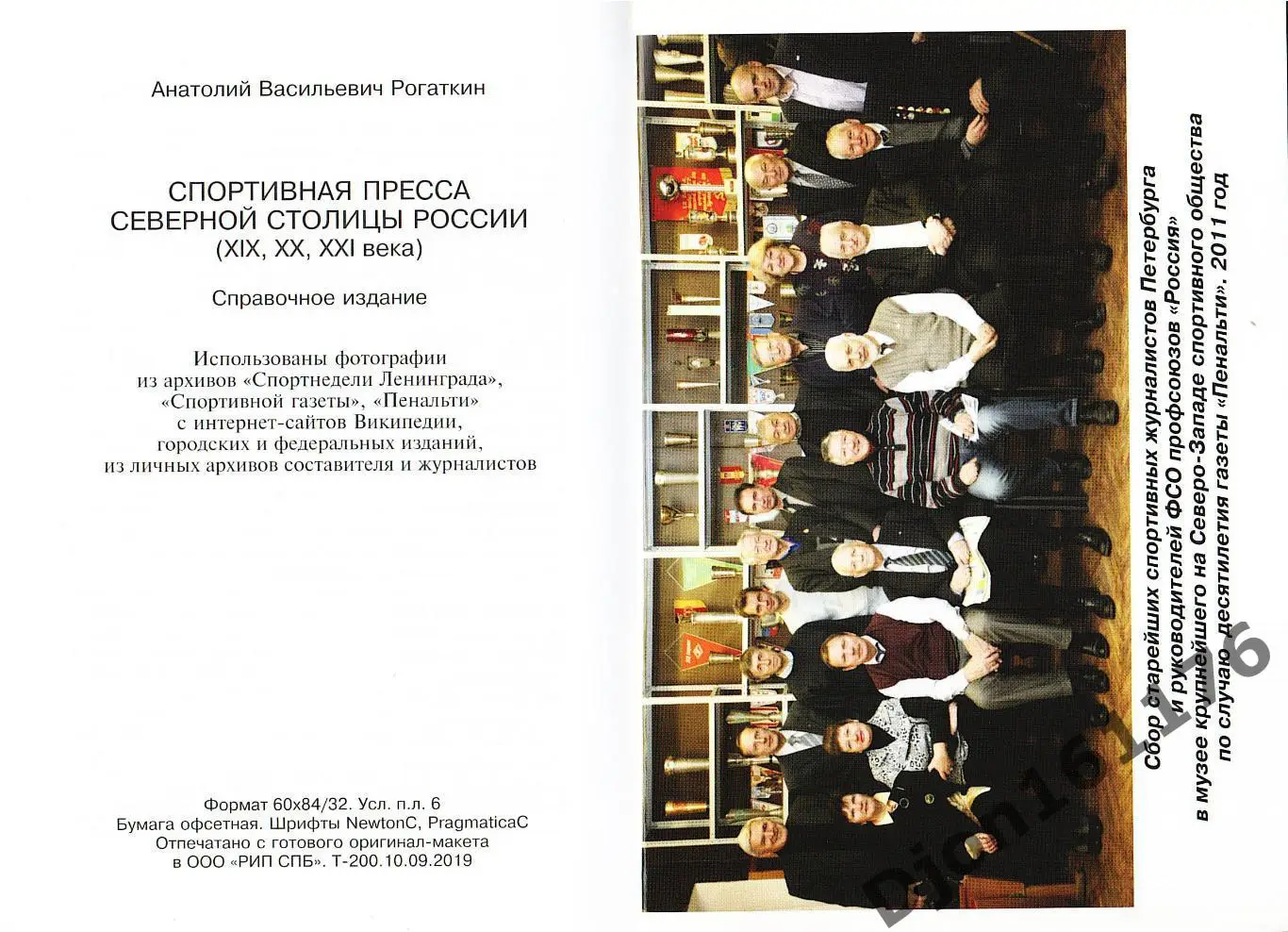 А.В.Рогаткин. «Спортивная пресса Северной столицы России (XIX, XX, XXI века)». Справочное издание. МРОО «Физкультурно-спортивное общество профсоюзов Санкт-Петербурга и Ленинградской области «Россия». Санкт-Петербург. ООО «РИП СПБ». 2019 год. 200 экз. 192 стр.