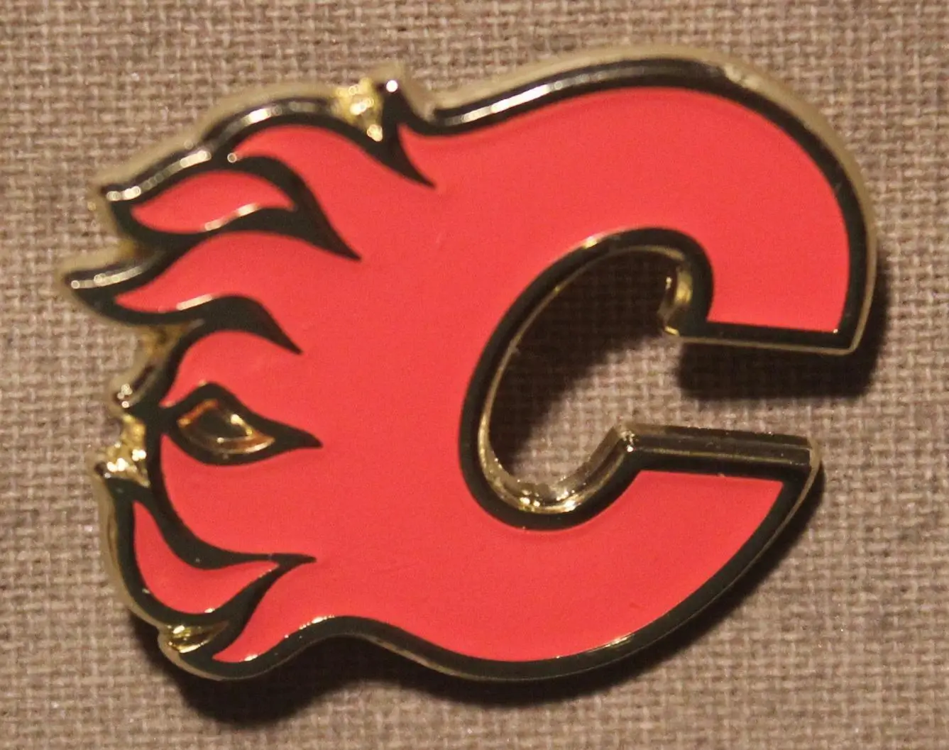 Продается значок с изображением эмблемы клуба Национальной хоккейной лиги "Калгари Флэймз".