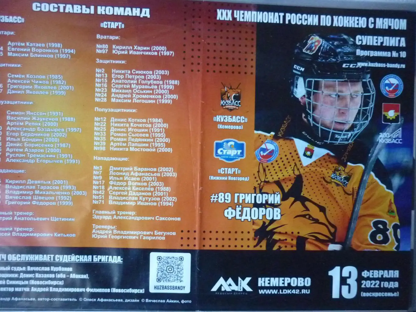 Кузбасс(Кемерово) - Старт(Нижний Новгород) - 2021/22 - официальная программа