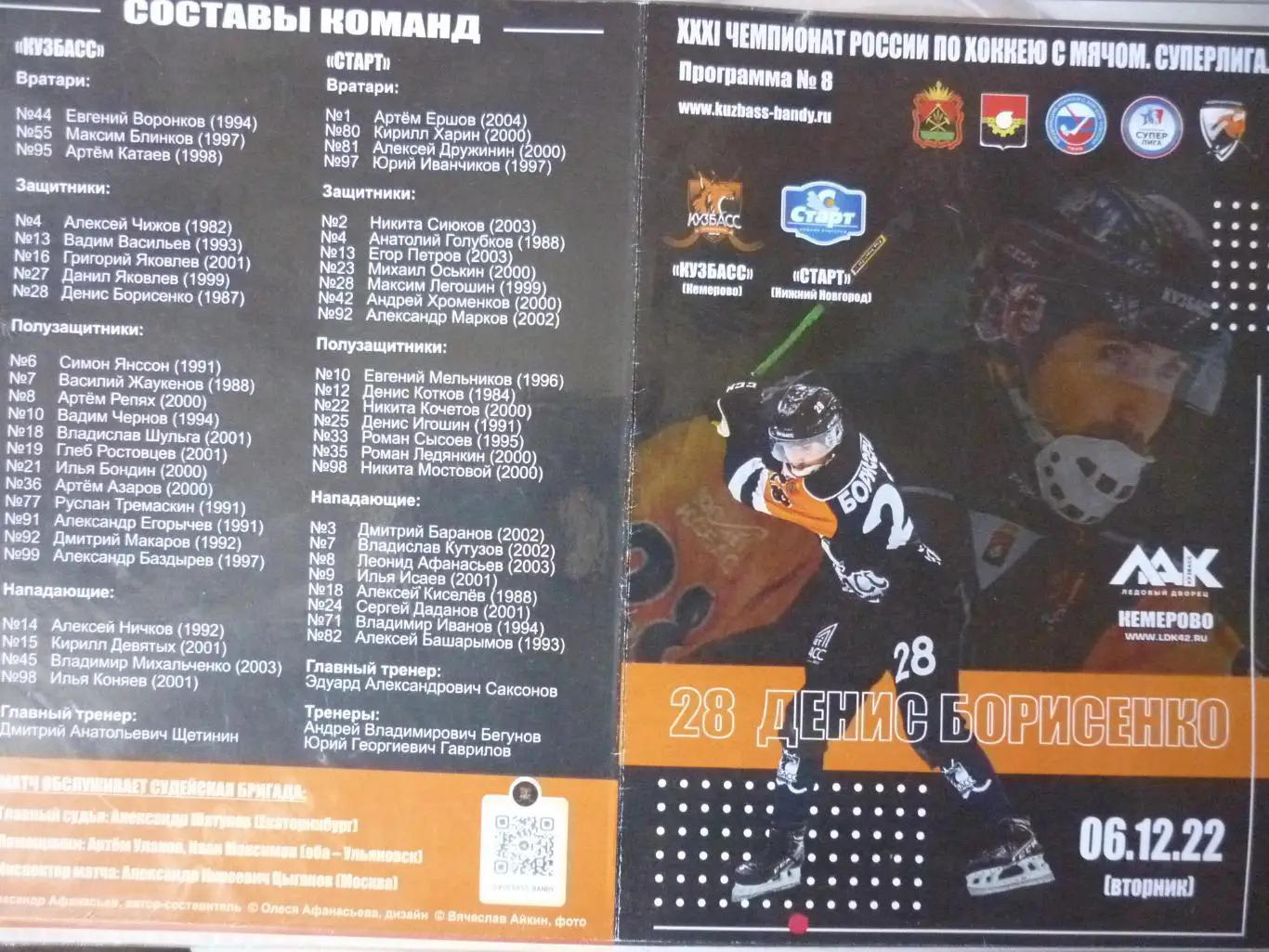 Кузбасс(Кемерово) - Старт(Нижний Новгород) - 2022/23 - официальная программа
