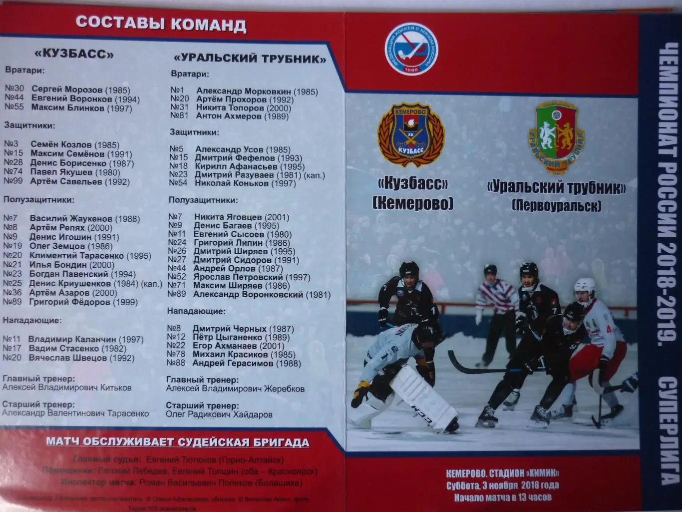 Кузбасс(Кемерово) - Уральский трубник(Первоуральск) - 2018/19 - официальная программа