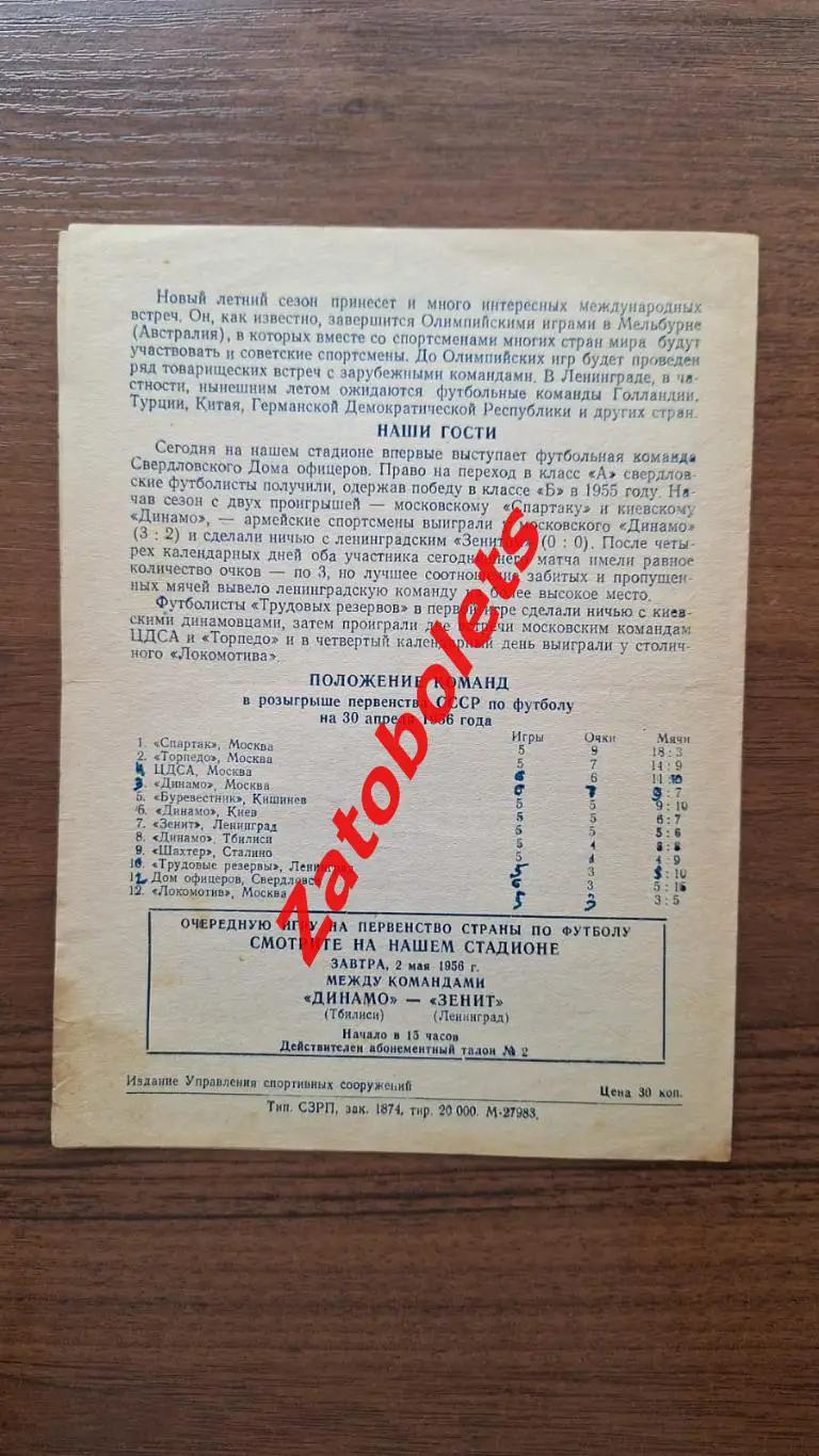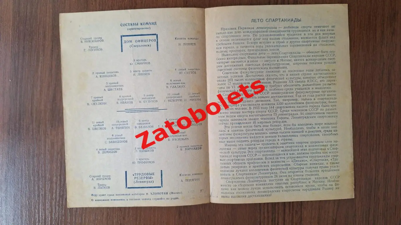 Трудовые Резервы Ленинград - ДО Дом Офицеров Свердловск 1956