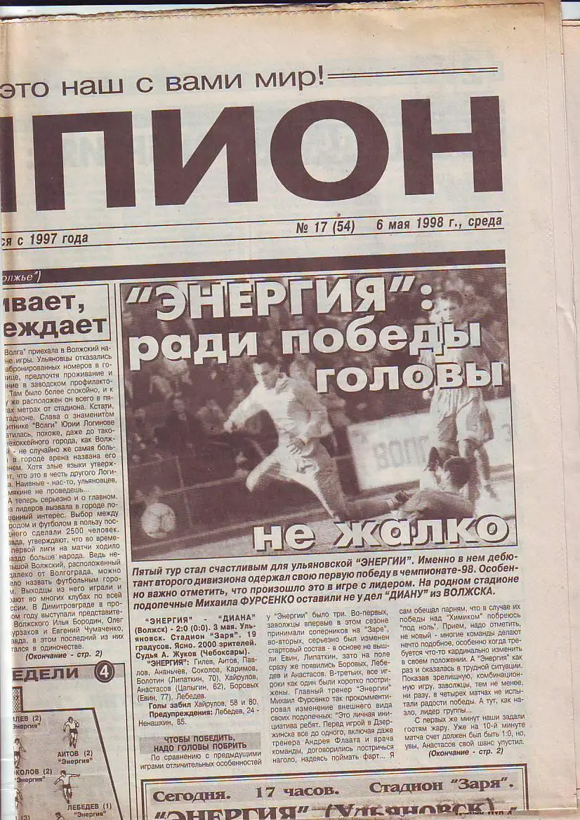 Газета Чемпион № 17 6.05.1998