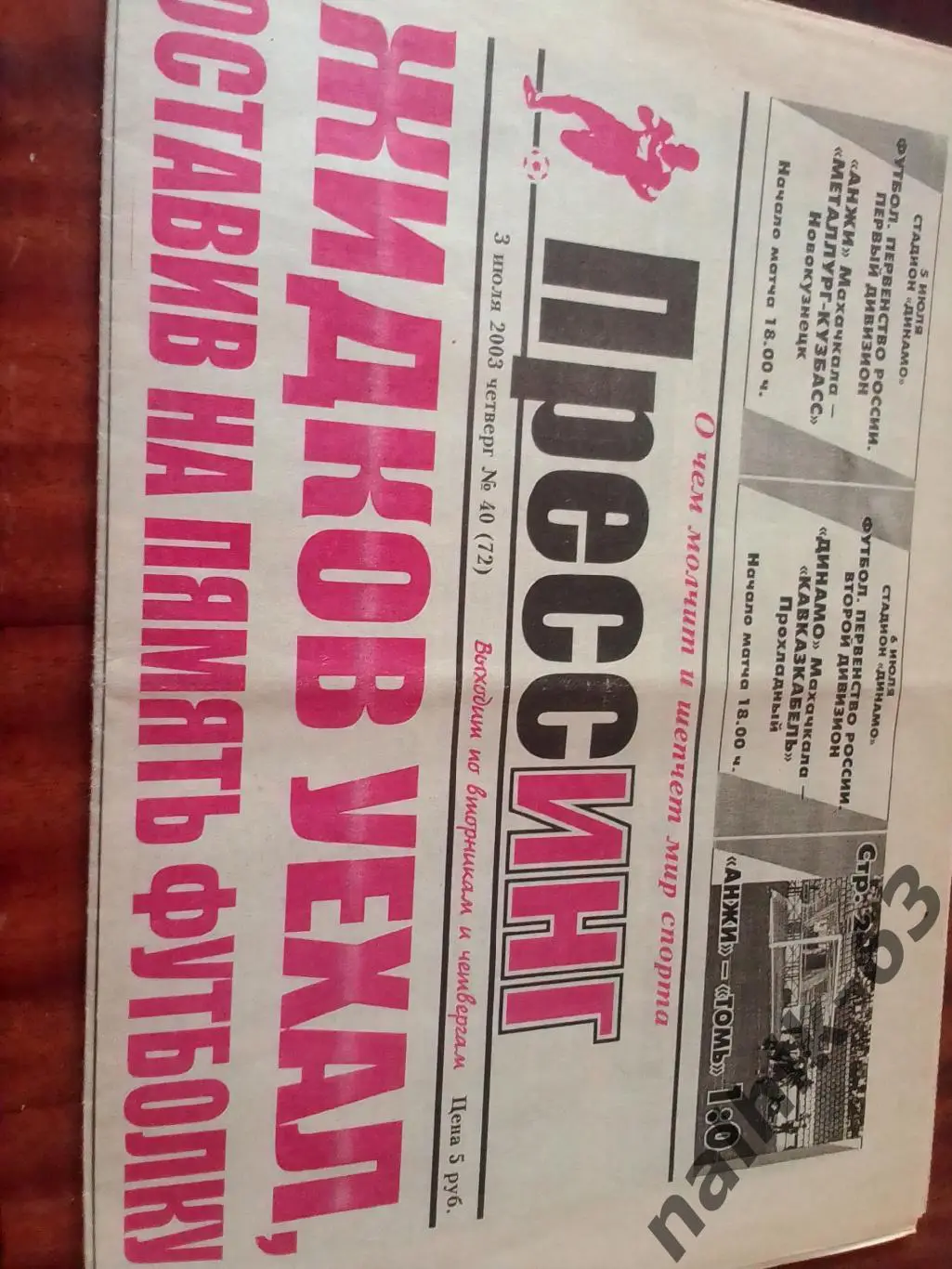 Анжи Махачкала-Томь Томск\Газета Прессинг Махачкала 2003 год