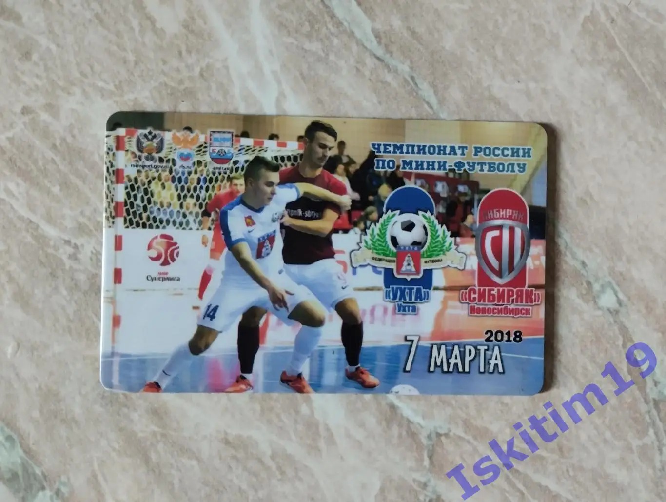 Магнит сувенирный. Мини-футбол. Чемпионат России. Суперлига. МФК Ухта - Сибиряк Новосибирск. 07.03.2018. Состояние на фото