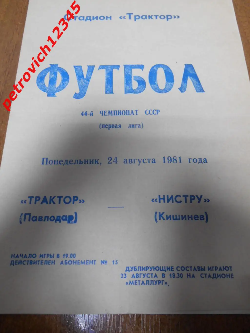 Трактор Павлодар - Нистру Кишинев - 24 августа 1981г